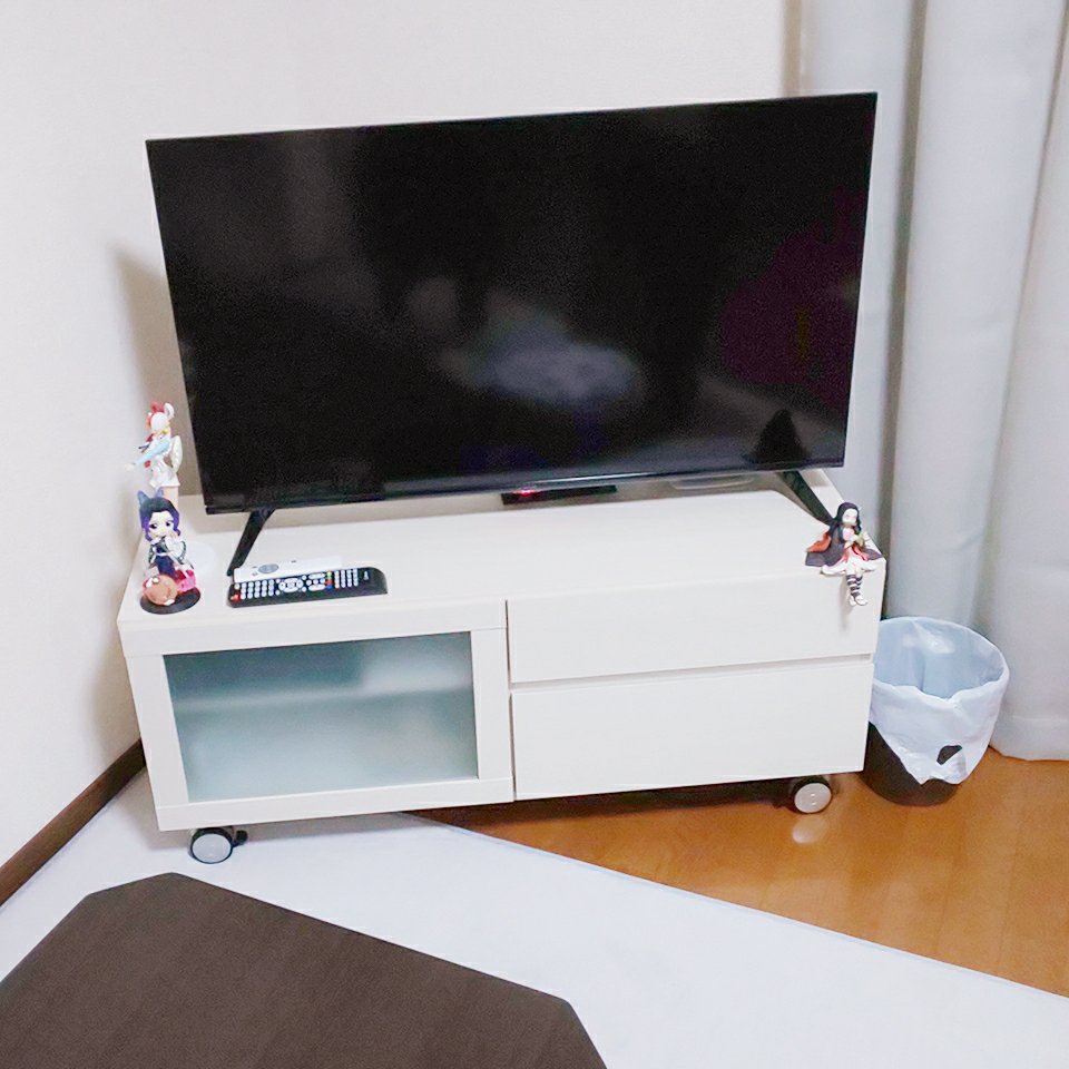やーーーーーっとTVとTV台、そして据え置きのSwitch有機ELを導入しました!TVとTV台は寝袋君が、Switch有機ELとソフトは私が購入。12月のボーナスから捻出しました。ちなみにこのTVにはTV線を繋げていないので、ゲームをやるだけの箱状態です。何か番組流せば見るのに…