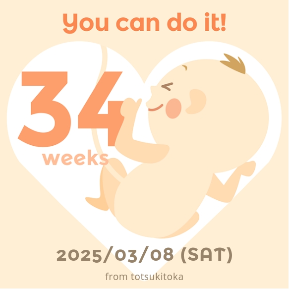 妊娠34週に入りました!こちゃは順調に成長しています~!以下お腹の写真も載せてますので閲覧注意です。