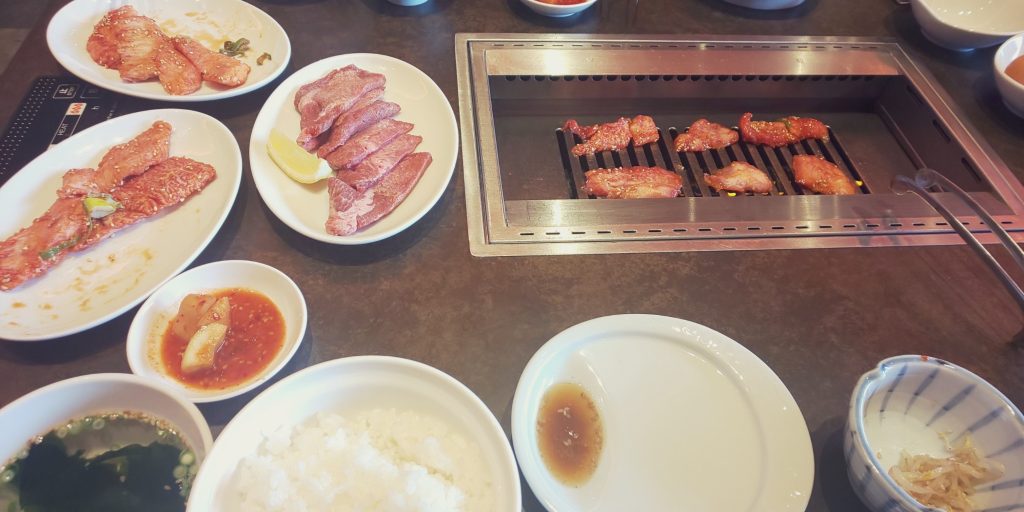 店に戻ってすぐに席に案内されてラッキーでした。カルビ定食、豚トロ、牛タンを頼んでみました。1番最初に食べたカルビが美味しすぎてふたりで「うまーーーーーい!!」と言いながら白米をかき込むはめに笑
