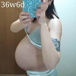 ちょうど昨日のお腹になります笑 エコーとお腹の写真まとめページも更新しているので興味があれば見比べてみてくださいー!1週間前の35w6dの写真と見比べると、お腹がより前に突き出て重心が下になっているのがなんとなくわかるかなと思います。私は週1で洗面台の鏡でお腹を見ている姿しかわからないのですが、母の買物に付き合った時にGUの全身鏡で自分の姿をみたらお腹が大きすぎてびっくりしました笑