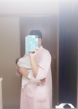 - 退院前にこちゃを取り上げてくれた助産師さんが会いに来てくれて「お産も入院生活も頑張りましたね」と言われ号泣する