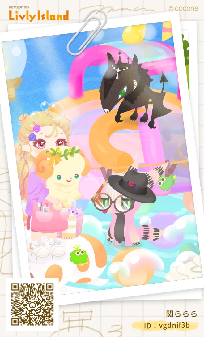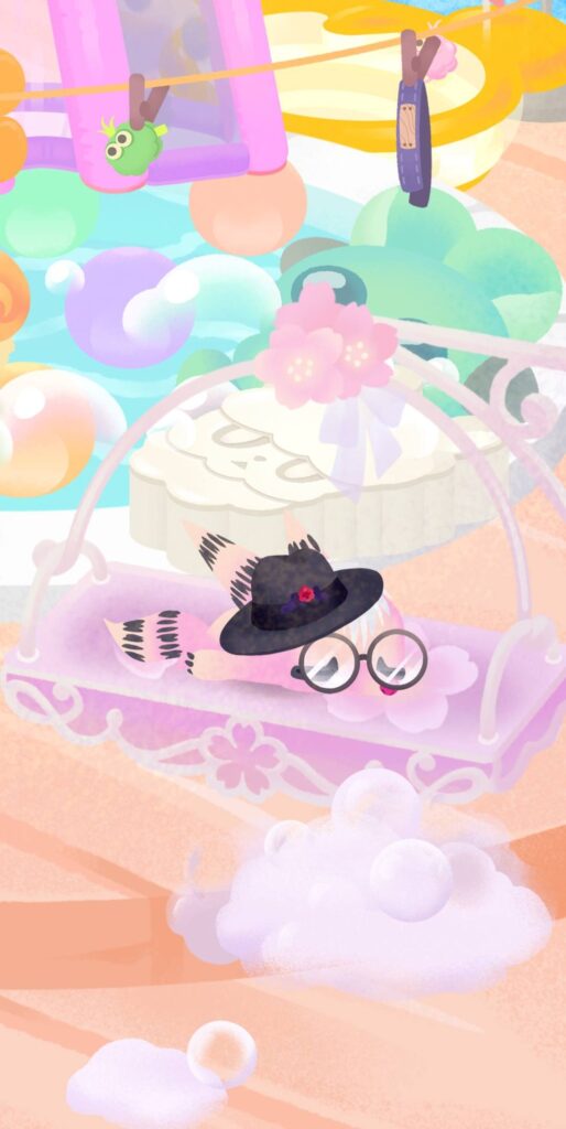 いつものプールの隅っこに設置してみたら、これリヴリーが乗りに来るアイテムらしく、うちの子3匹が順番にブランコへやってきました。ブランコにリヴリーが乗るとゆらゆら揺れて可愛い!これはしばらくプールに設置だな。色合いもこれ1つだったらプールに馴染むし。という訳でバザールは撤退ー!