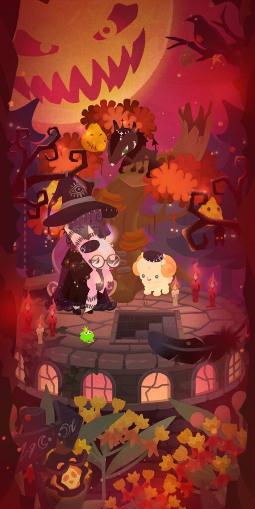 プールに飽きたのでハロウィンにしてみました。この歪んだ洋梨の木がヴォルグとマダラガカの変身薬で大量に消費するので需要あるんです!!池目てるはお迎え当初ピグミーでしたが、私がマイショの売上金で歪んだ洋梨の木とホテルエントランスの木(5,000GP×2)を買って、自分の島で収穫した木の実だけでヴォルグの変身薬を作ることができたので、ピグミーからヴォルグの姿へ変身させました。