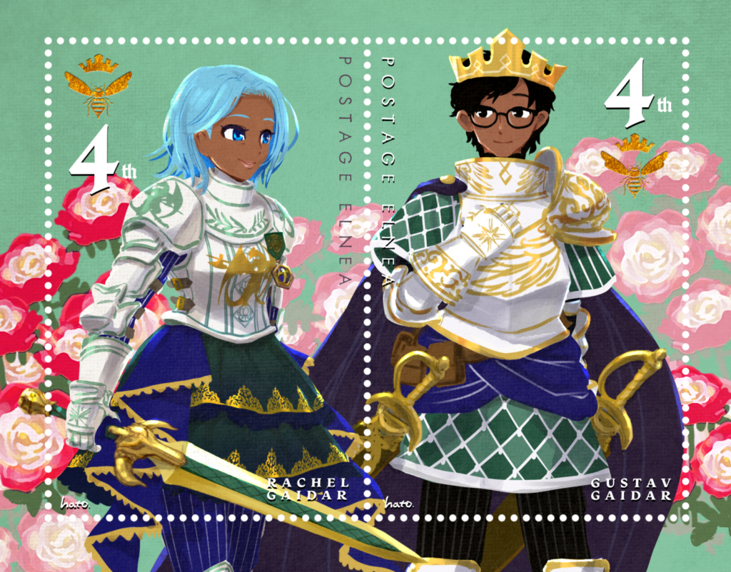 その時にまだ学生だった3歳年下の王家の長男グスタフ・ガイダルがラシェルに声をかけたことがきっかけとなり、ラシェルはグスタフに惹かれるように。そしてグスタフの成人を待って結婚し王家に嫁入りしました。夫グスタフは戴冠し王となり、ラシェルは騎士隊長として夫が崩御するまで献身的に支え続けました。年下の夫が先に亡くなったため中の人のショックも大きかった…