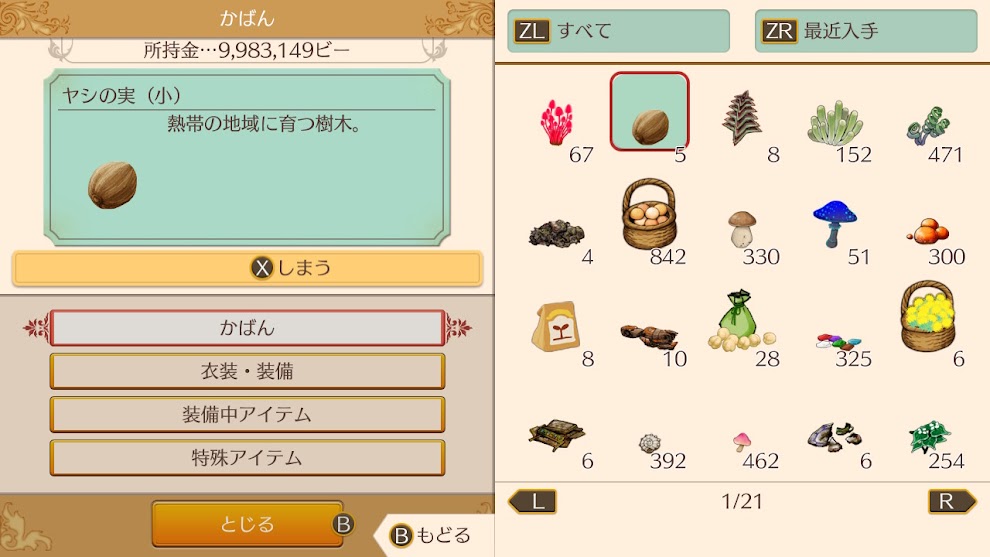 7刻しっかり籠って採取をし続けた結果、5個でした。他の薬草類が大量に採れたので、これは魔銃師会に入ったときの仕事Pの足しにさせてもらおうと思います(魔銃師会の仕事が1番キツイからあまりやりたくないのが本音)5個もあれば料理に使えるし、余ったら培養室に持って行ってヤシの実(大)にします。